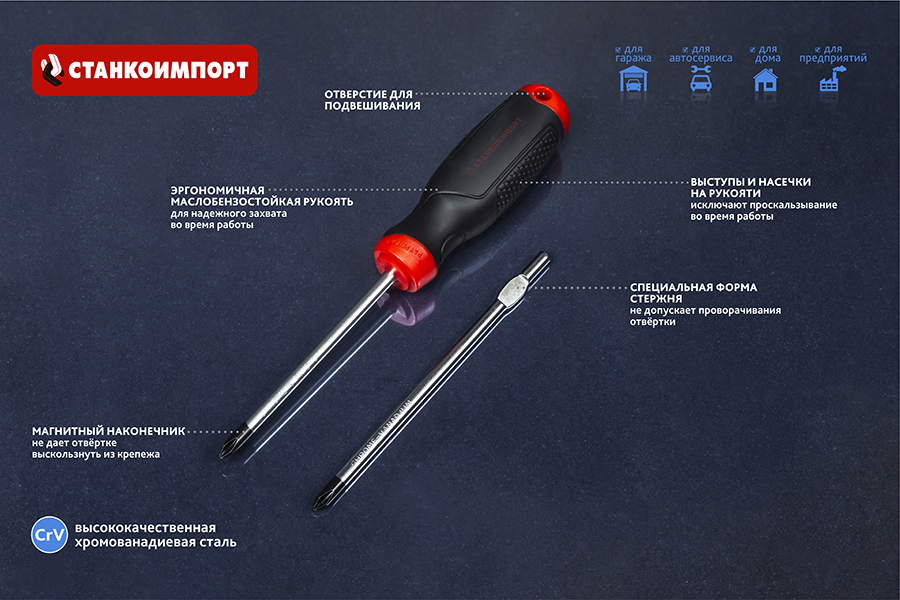На отвертки бренда СТАНКОИМПОРТ распространяется гарантия 12 месяцев.