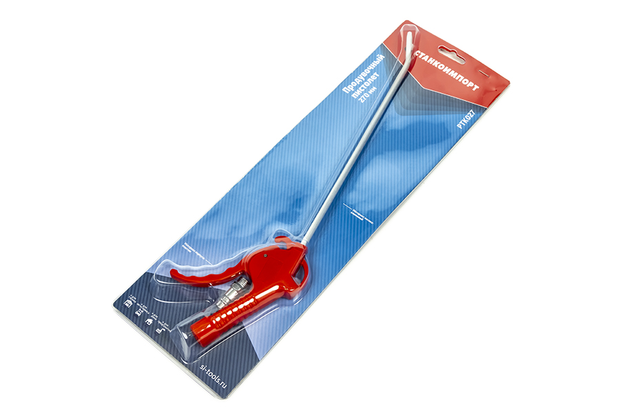 Продувочный пистолет Станкоимпорт PTK027 270 мм применяется для удаления пыли, мусора и жидкостей с различных поверхностей, а также для продувки деталей. Его корпус выполнен из прочного пластика, благодаря чему рассчитан на длительный срок эксплуатации.