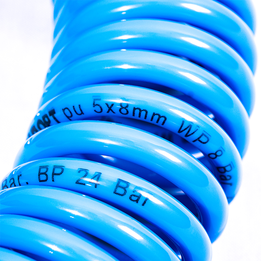 Шланг воздушный спиральный применяется для подачи воздуха от компрессора или линии сжатого воздуха к пневмоинструменту. За счет своей формы в виде спирали, шланг имеет достаточно компактный размер и не мешается под ногами.