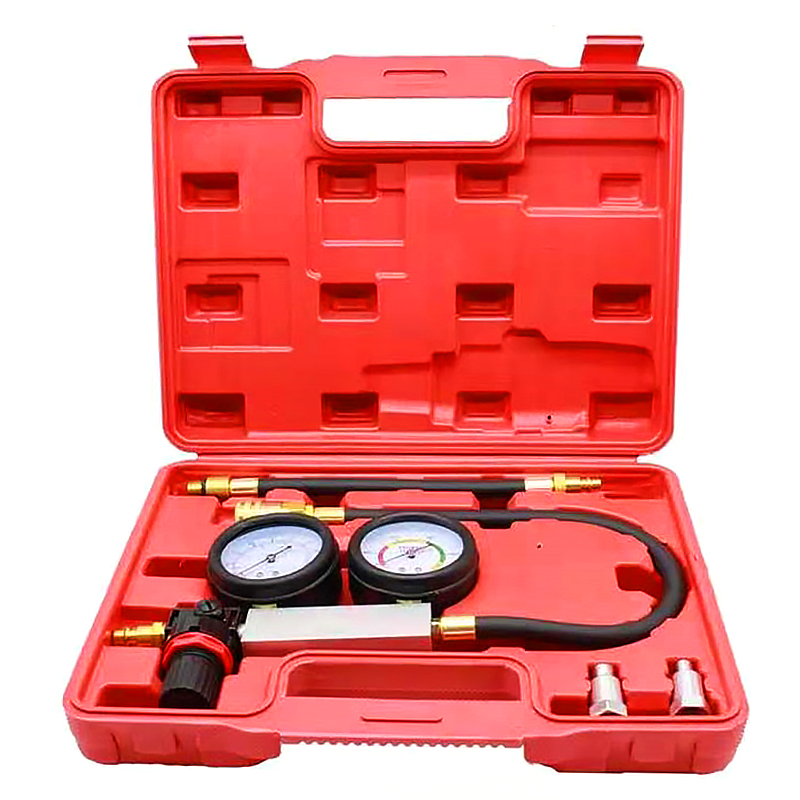 Представляет собой специальное приспособление с двумя манометрами при помощи которого можно выявить целый ряд таки неисправностей как, плотность прилегания клапанов, целостность прокладки головки блока цилиндров, выявить трещины в стенках цилиндров, проверить плотность прилегания поршневых колец двигателе внутреннего сгорания.